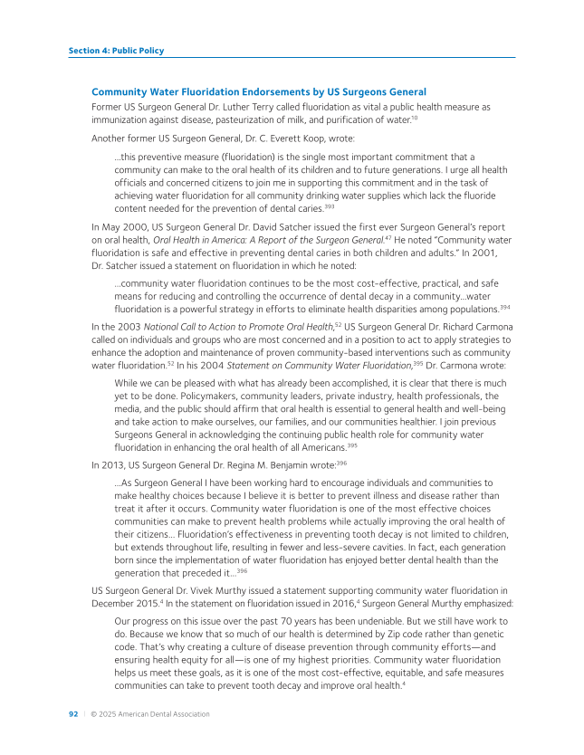 on oral health, Oral Health in America: A Report of the Surgeon General.47 He noted “Community water